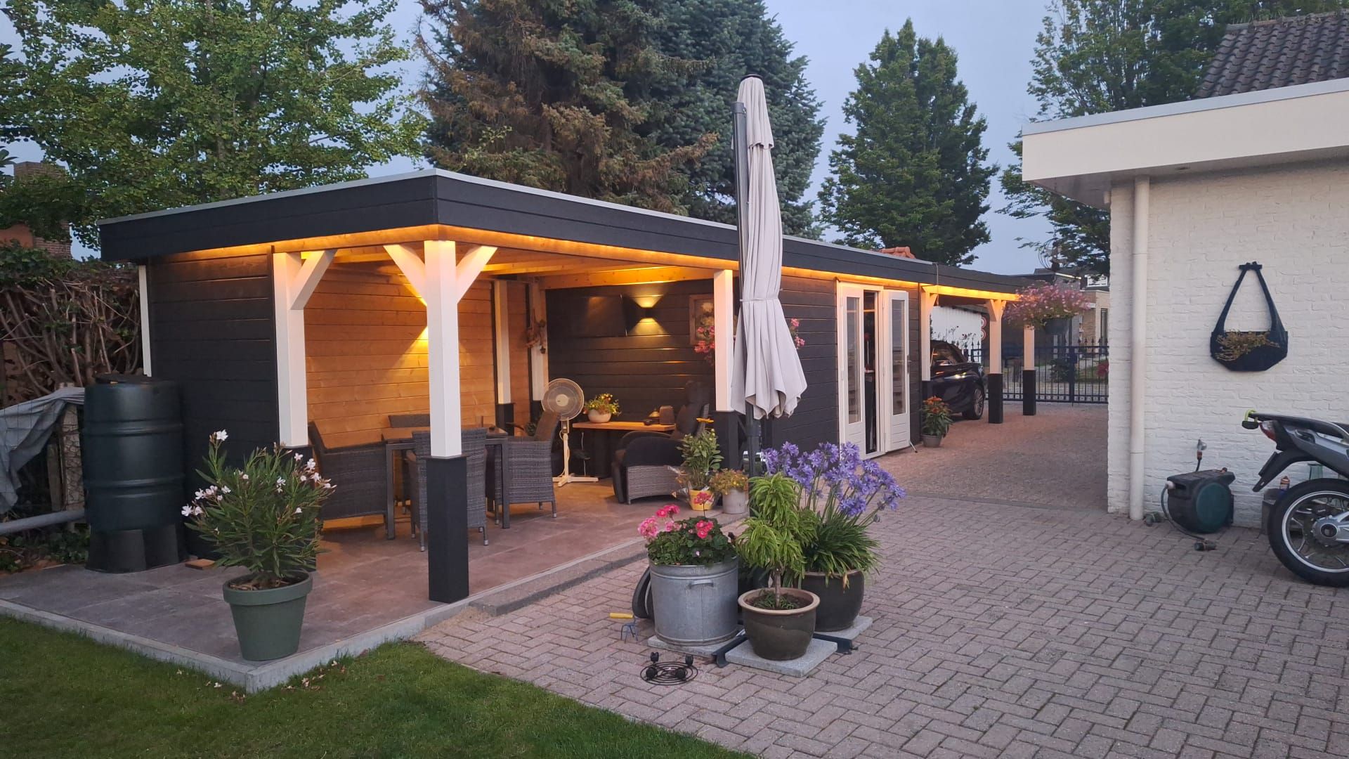 Tuinhuis met overkapping geleverd in Voerendaal, door klant zelf gemonteerd